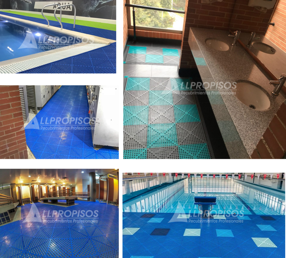 Pisos antideslizantes para areas con humedad constante, piscinas, saunas, vestidores.